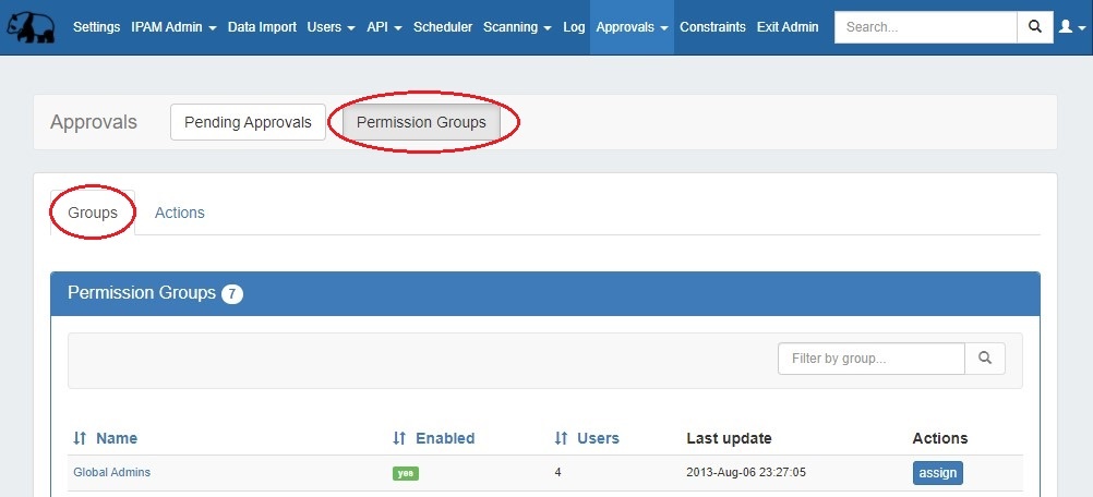 From the Approvals Tab, navigate to the Permission Groups sub-tab Groups page tab.