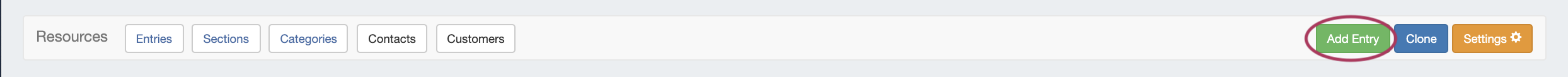 To create a new Entry, click on the "Add Entry" button from the Resource Tab / Entry List Page.