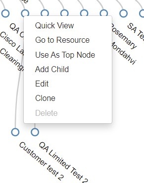 Hovering over a specific resource or node, then right clicking will open a context menu with the following options: