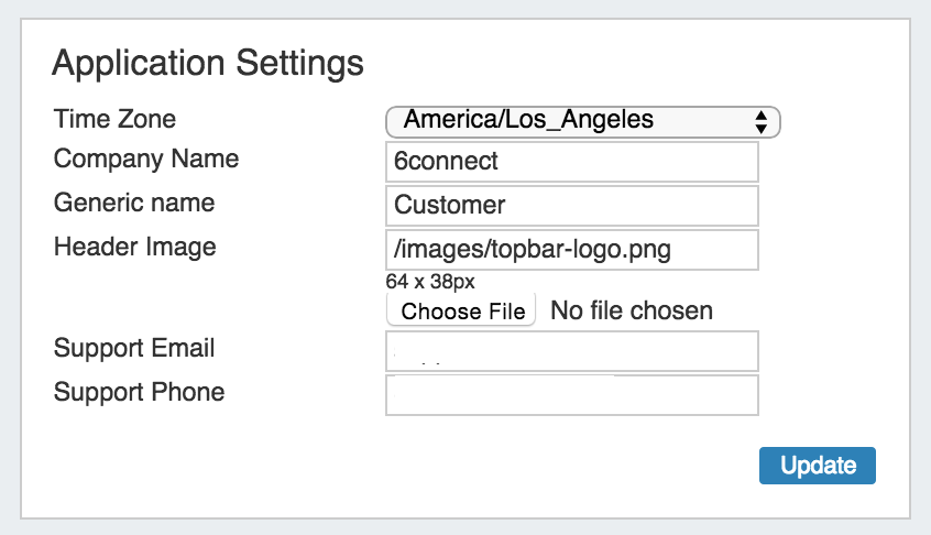 Application Settings is where you provide company specific info that appears in the header and Dashboard.
