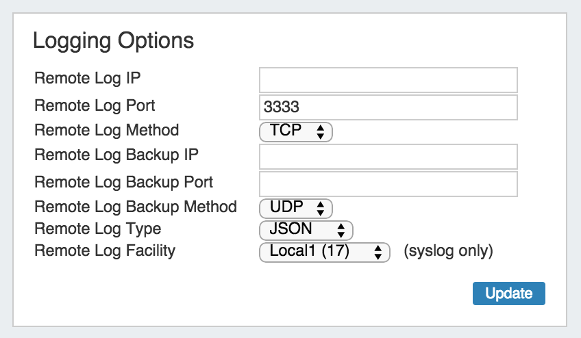 Remote Log Backup IP: Target IP address for the Backup syslog server you will send log information to