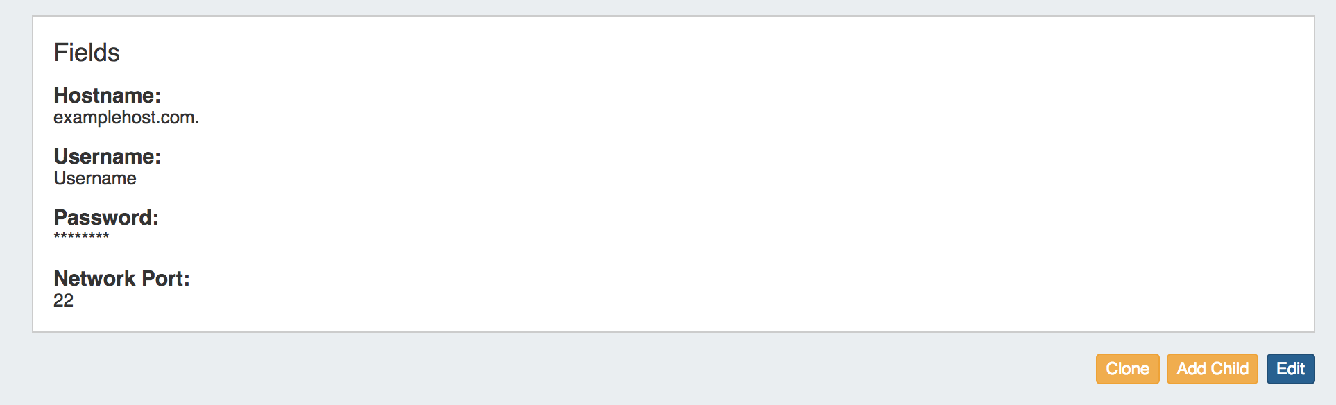 See (6.1.0-6.1.2) Customizing Sections and (6.1.0-6.1.2) Customizing Fields for information on adding fields to sections. Hostname, Username, Password, and Network Port will all be contained under the "Existing Fields" selector when adding fields to the Section.