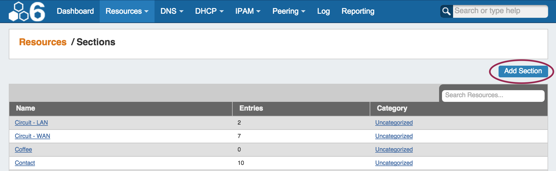 Click "Add Section" from the Sections sub-tab under the Resources Tab