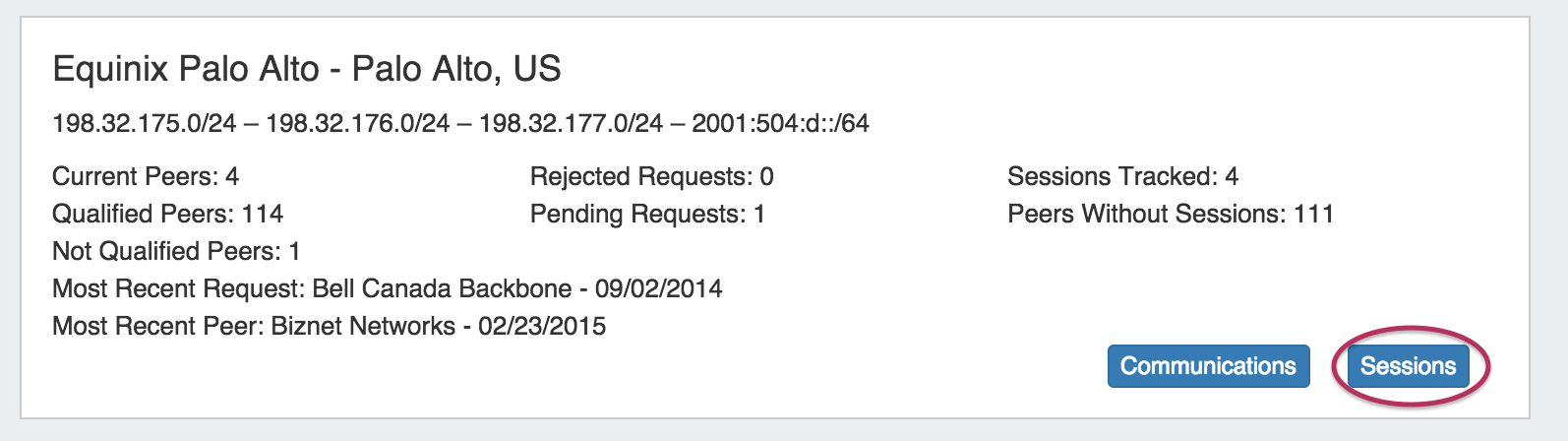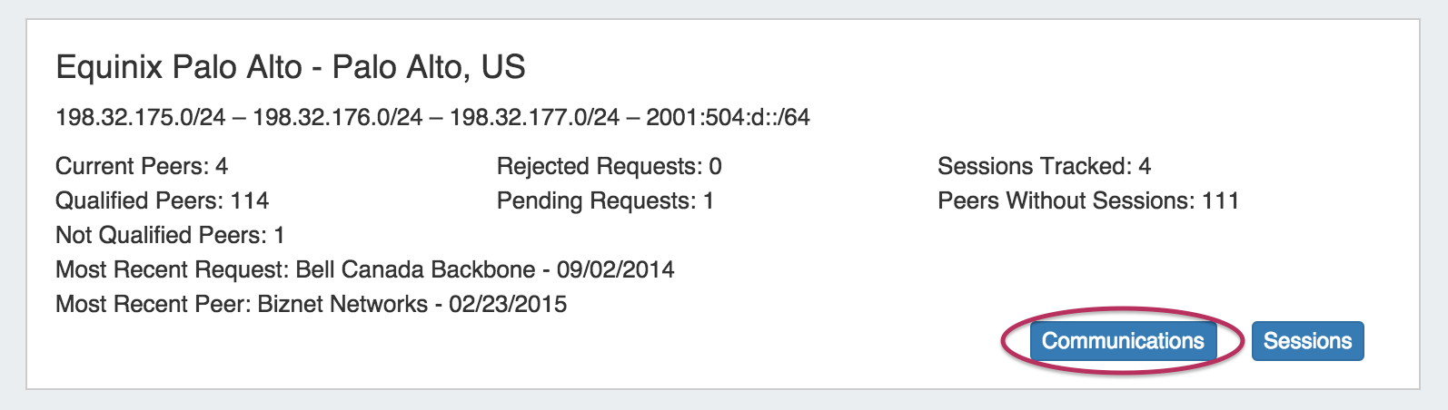 Once a session has been added with a peer, you will see the peer listed the communications list. Open the Peer Communications Manager by clicking on the "Communications" button for the exchange that hosts your session.