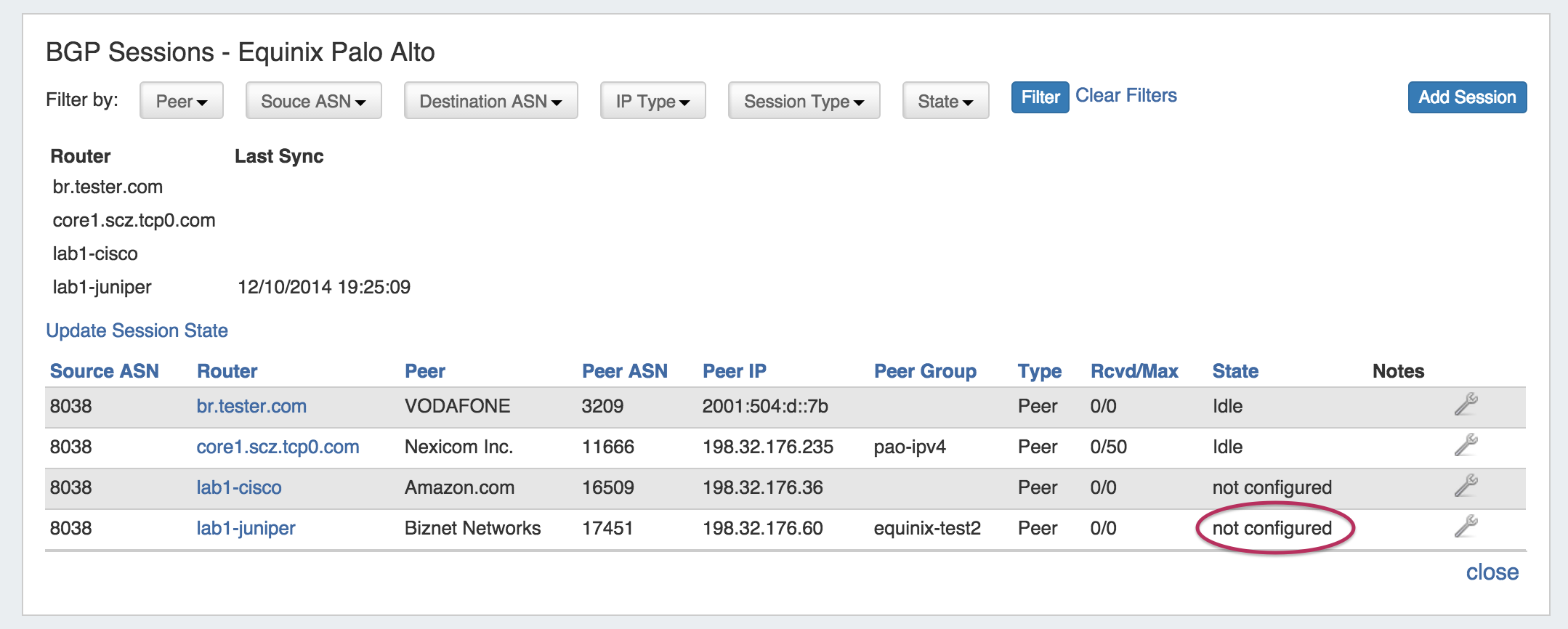 6) Repeat for new Routers, Sessions, and Peers.