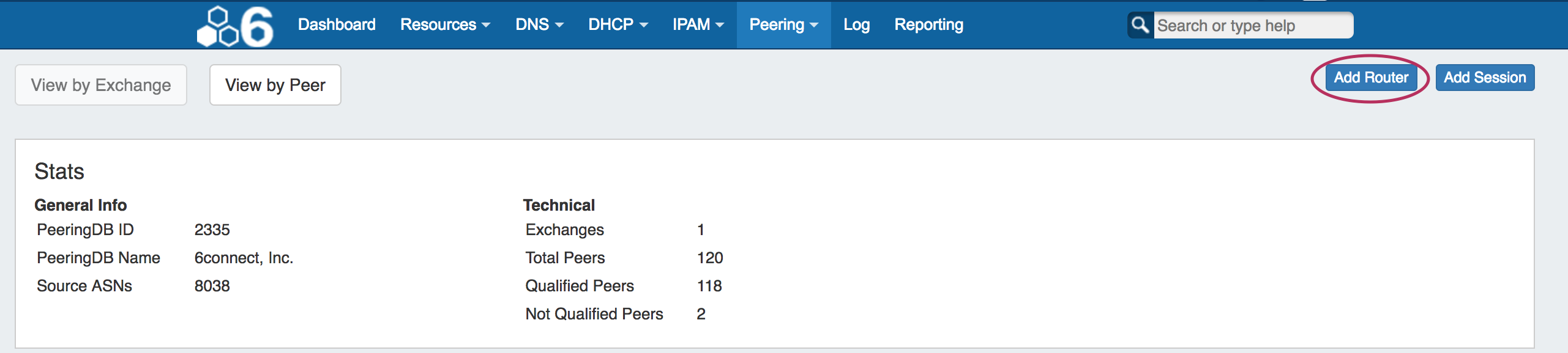 The recommended method is to start with the "Add Router" button in the Peering Tab.