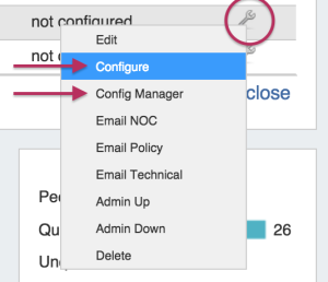 You may configure the session through 1 click config or the Config Manager, accessed by clicking on the Action Menu (wrench icon) for the session. 1 click config uses the default config settings, while the Config Manager allows you to manually create one time use unique settings.