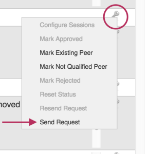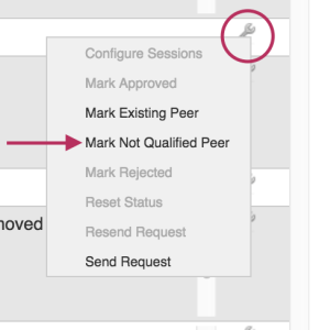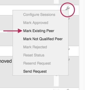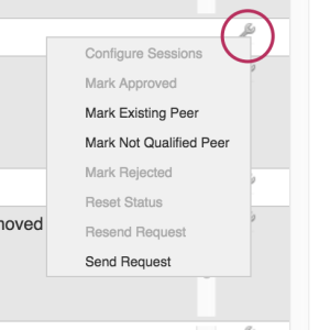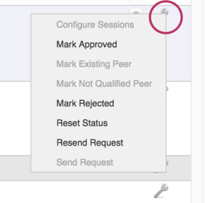 From here, you may manage peer requests, mark peer status, and configure existing sessions for that Peer through the Action Menu (wrench icon).