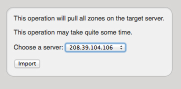 Just enter the target server information, click import, and watch all your zone data populate the 6connect database.