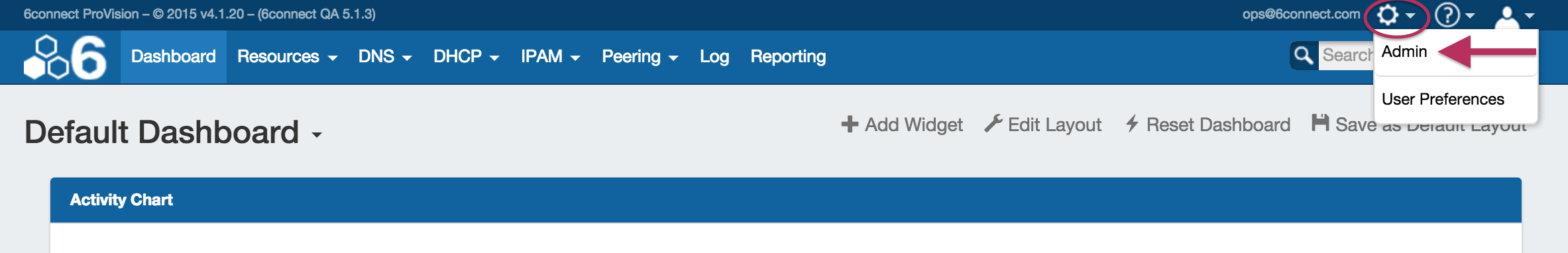 To access the Admin area, click the gear icon at the top right section of the header from any page. From there, select "Admin". You will then have access the Admin section tabs of ProVision, and will see the Admin Preferences page.