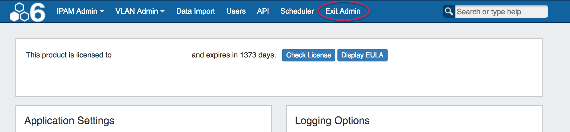To leave the Admin area, simply click the "Exit Admin" link in the navigation bar. You will be redirected to the Dashboard.