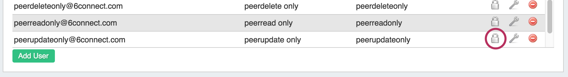 To remove a user from the Users list, click on the red circle "delete" icon next to that user.