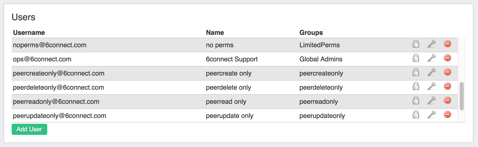 Add Users by click on the "Add User" button at the bottom of the "Users" section of the page. The Edit User dialog will pop up.