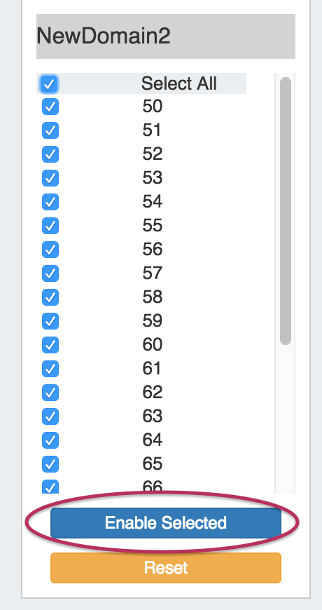 Select the desired VLANs to enable for the domain - you may either select all VLANs in your results list, or check VLANs individually.