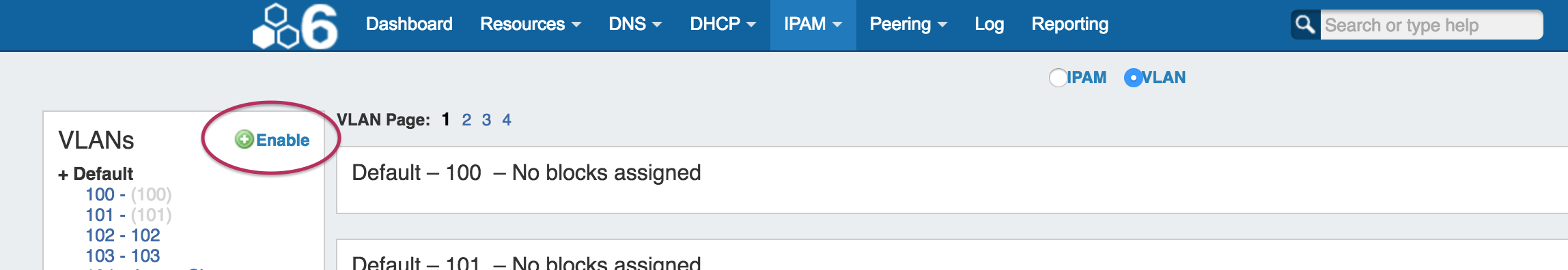 In the IPAM - VLAN page VLAN sidebar, click "Enable".
