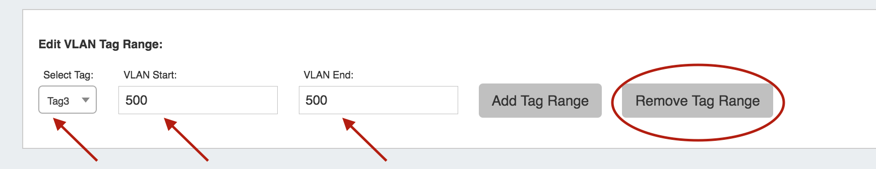 To remove a range of tags, under "Edit VLAN Tag Range":