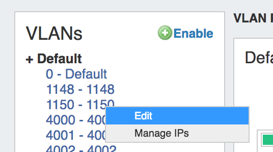 Edit an existing, already enabled VLAN by clicking on the VLAN in the VLAN List sidebar, then selecting "Edit".