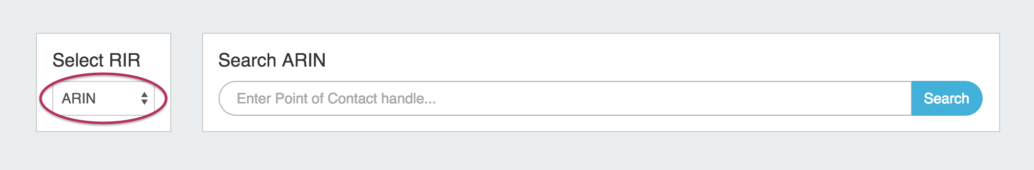 After selecting the RIR / Type (if applicable), enter the ARIN or RIPE Point of Contact Handle for the contact you are importing, then click "Search".