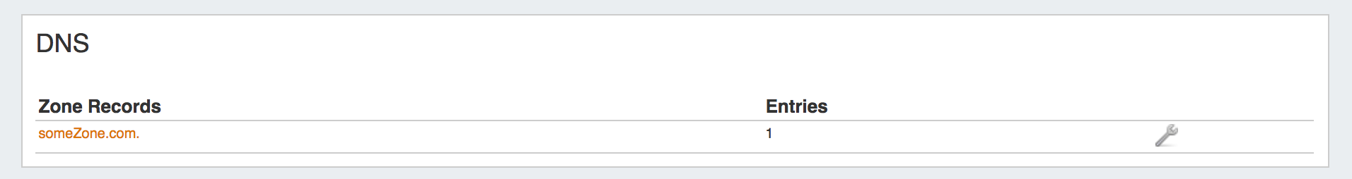This gadget is used on the Resource Holder Section type. The DNS Gadget shows zones that have the current Resource Holder set as their parent, and provides links to the zone's View Zone page.