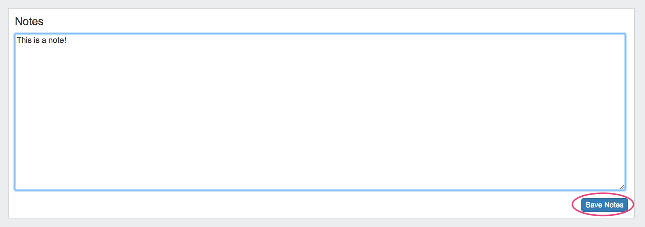 To save a note, just click inside the note box, type the desired notes, and click the "Save Notes" button.