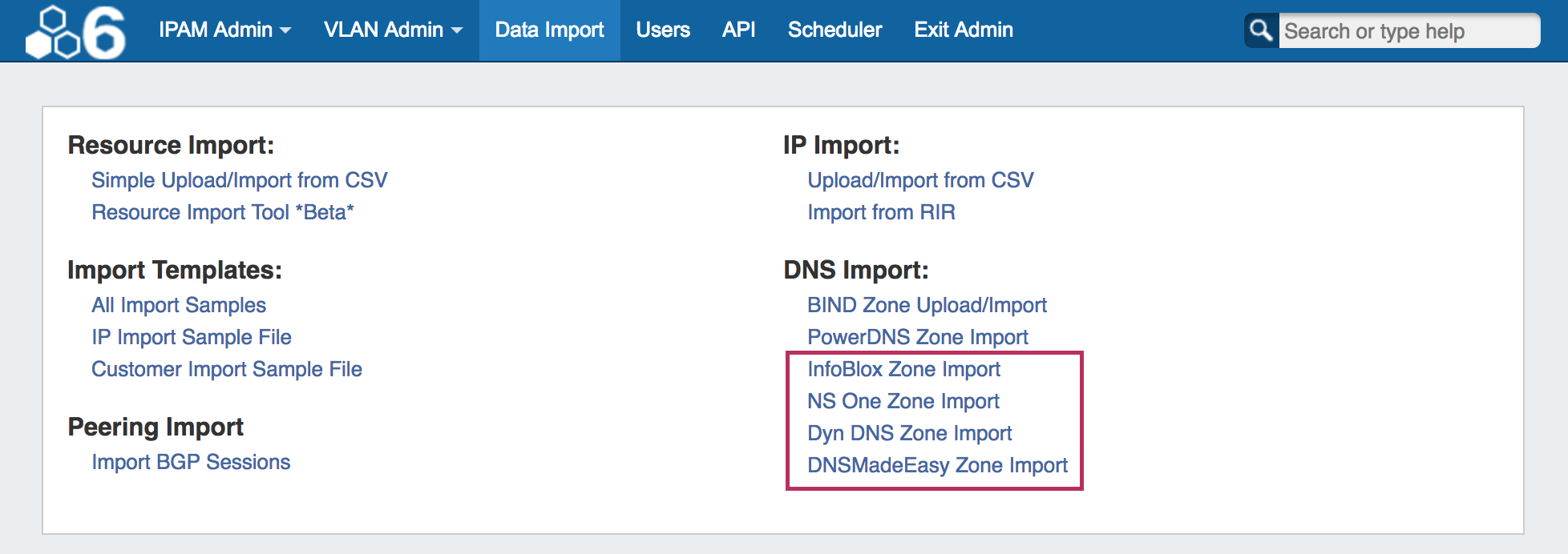 Provision DNSv3 supports the addition of four new DNS Zone Import options to the Admin Data Import Tab: