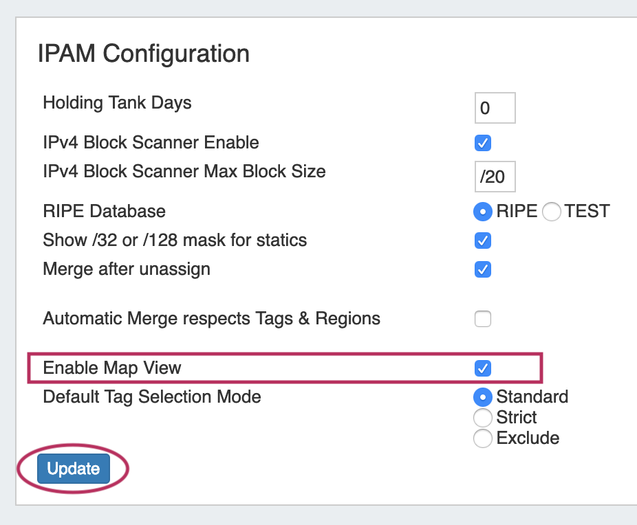 Map View enabled on the IPAM Configuration page