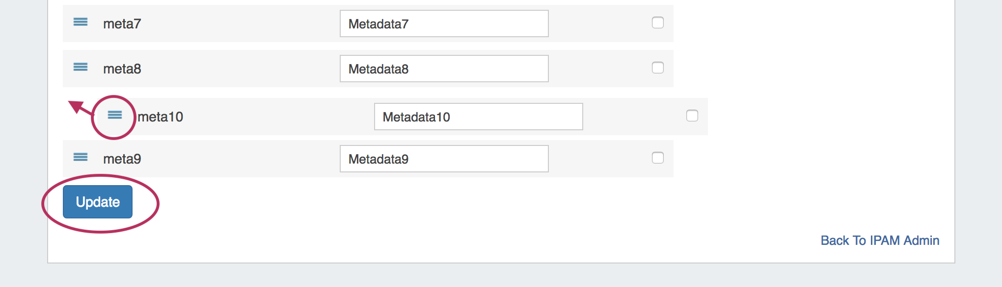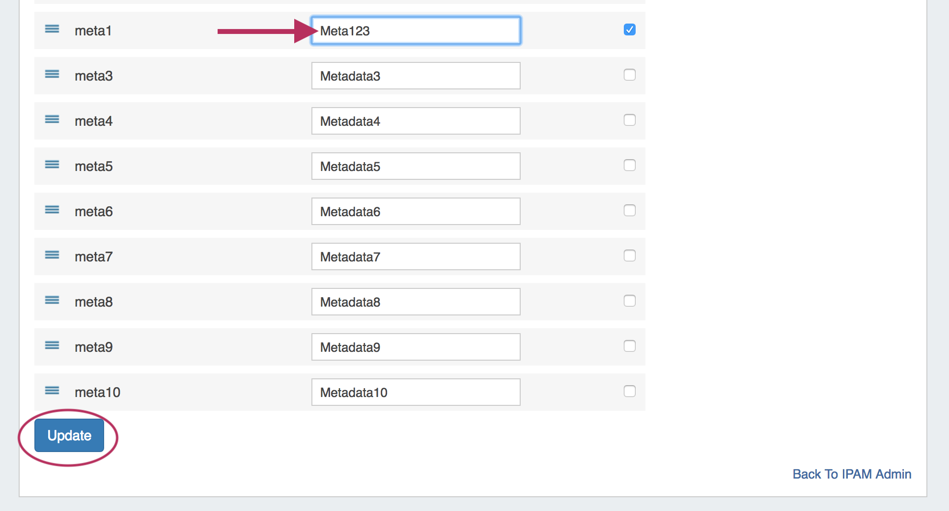 When complete, be sure to click on the "Update" button to save your changes.