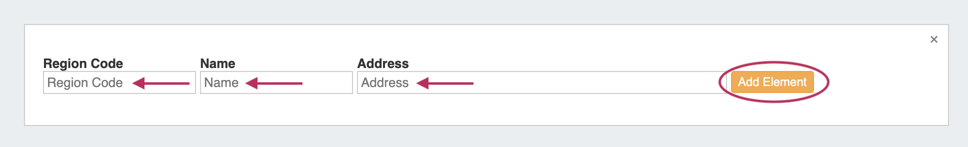 In the form that appears, type in a new Region Code, Name, and Address into the empty fields and click "Add Element".