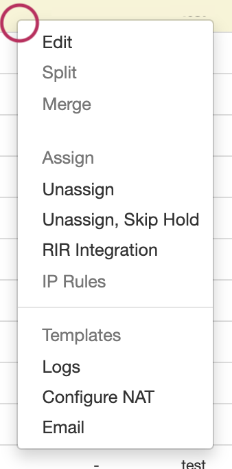 IPAM Block Action Menu - Overview