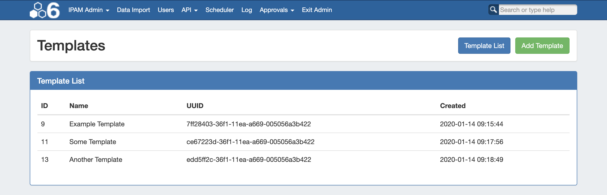 To return to the Template List, click the "Template List" button at the top right of the page.