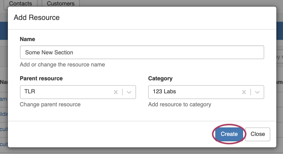 Create a new Section by specifying a Name, Parent, and Category. Then hit the "Create" button.
