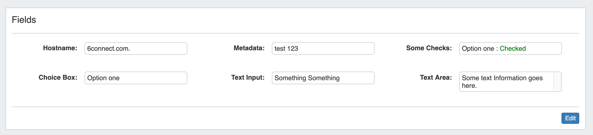 Then, check that the Resource itself has information entered into the "Hostname" field. If the field is already filled out, it will show in the "Fields" information area at the bottom of the Resource Entry page. To add or edit the hostname, click "Edit" at the bottom of the resource entry page, add the information to the Hostname field, and click "Save".