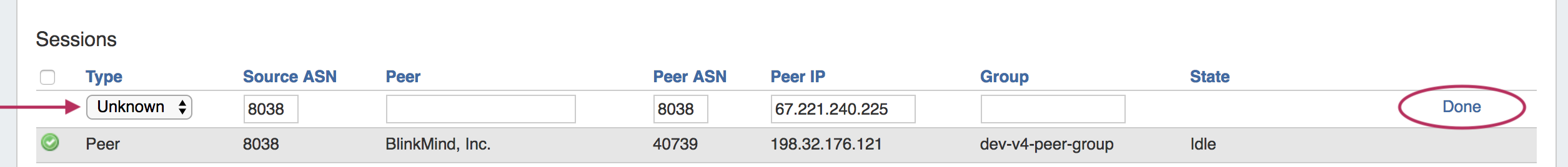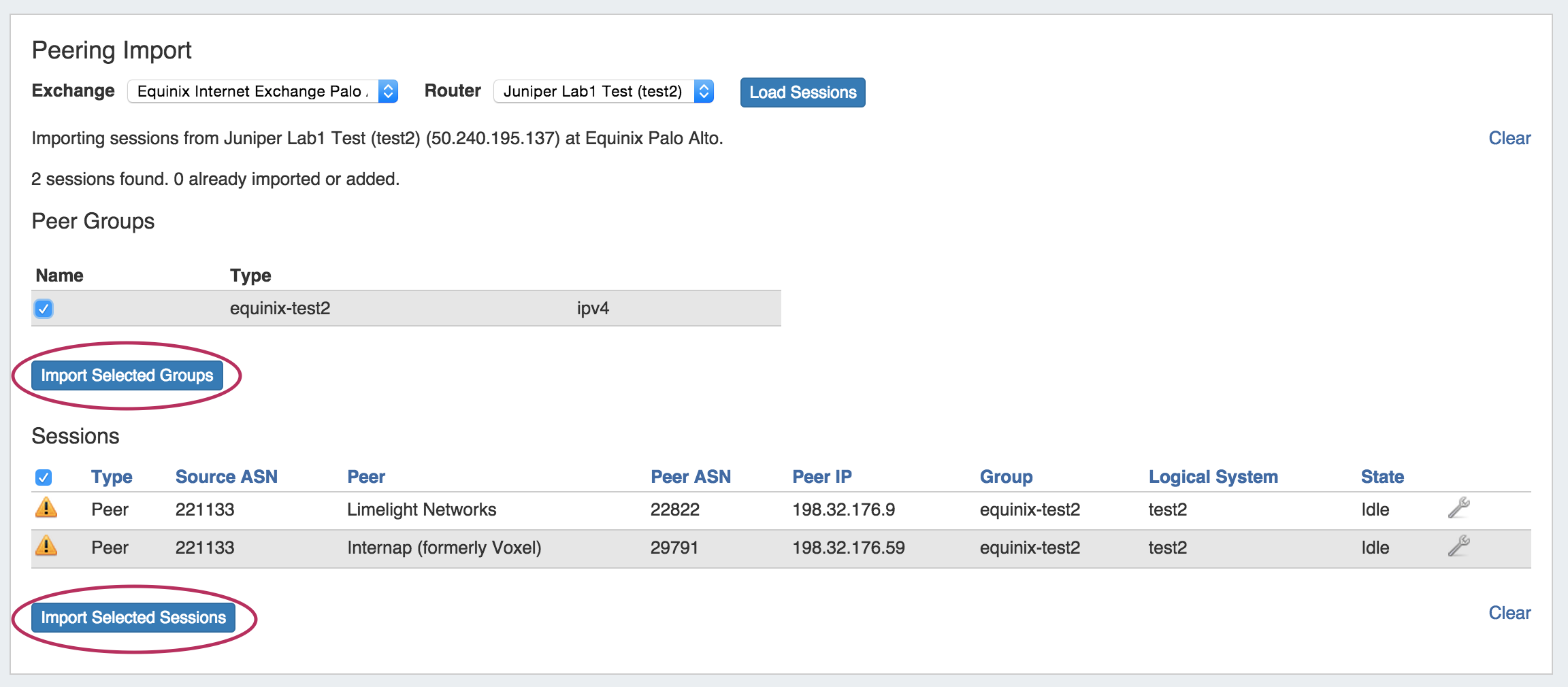 Once imported, you can manage and configure your sessions from the Peering Tab.