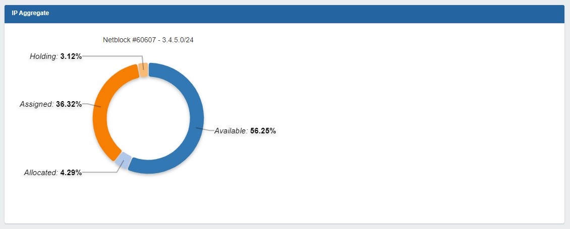 Illustrates the percentage of assigned, unassigned, allocated, and holding tank hosts for a specific netblock.