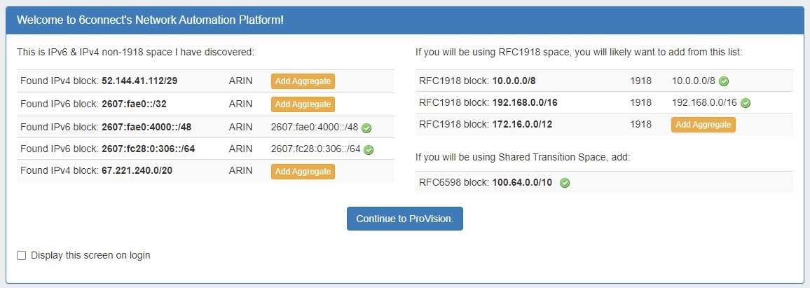 When done adding aggregates, hit the "Continue to ProVision" button at the bottom of the page.