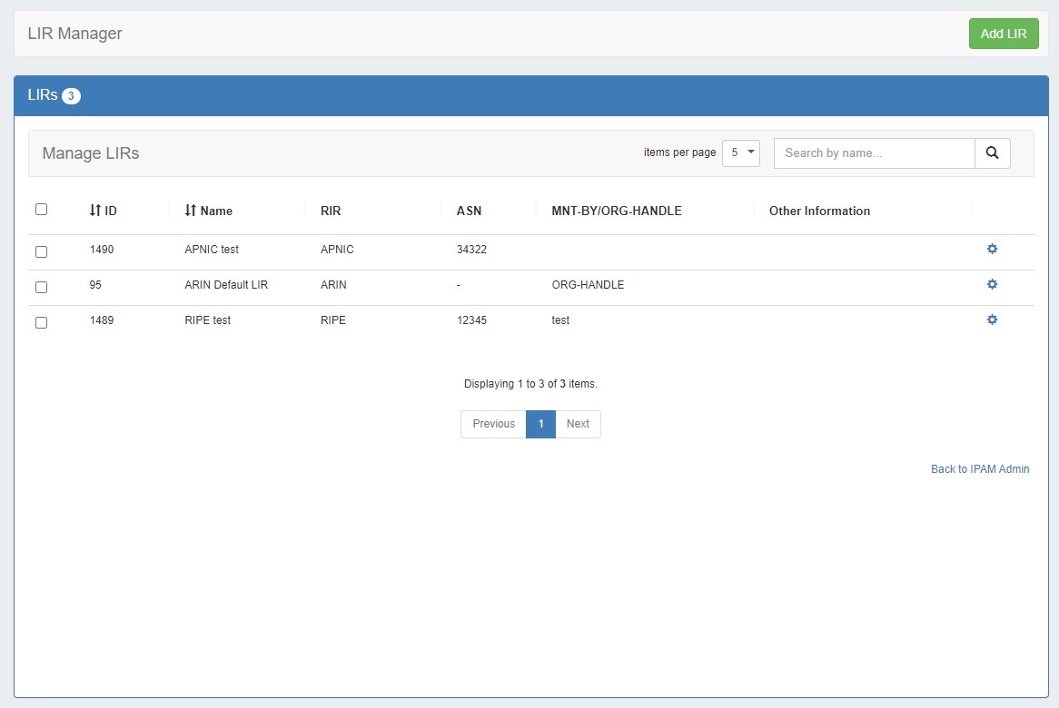 You will be taken to the LIR Manager page, showing your current LIRs.