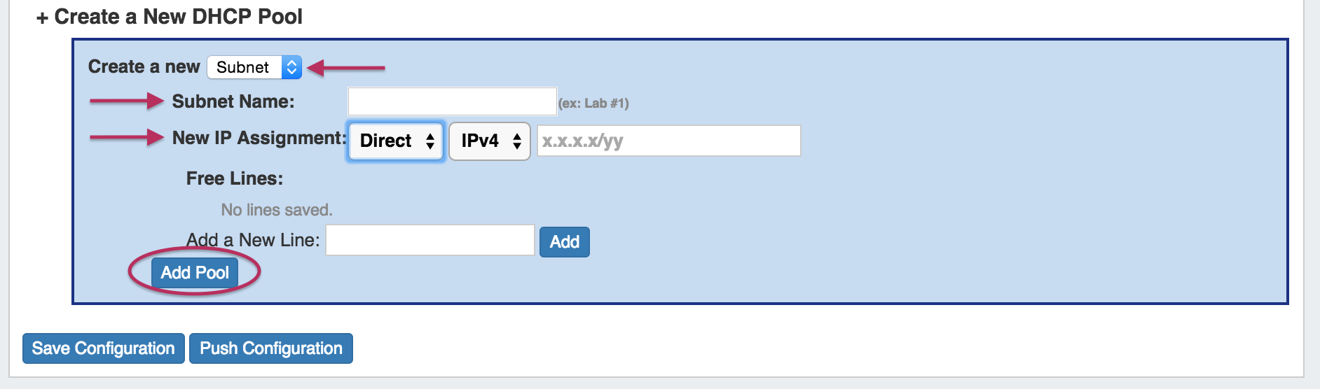 Enter the name of the Pool / Subnet, and select the assignment criteria: