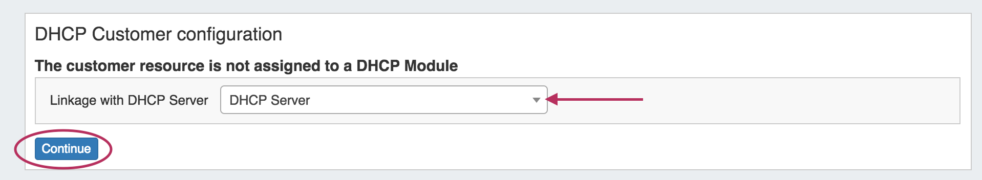 Link the Gadget with the desired DHCP server by selecting the server from the dropdown, and then click "Continue".