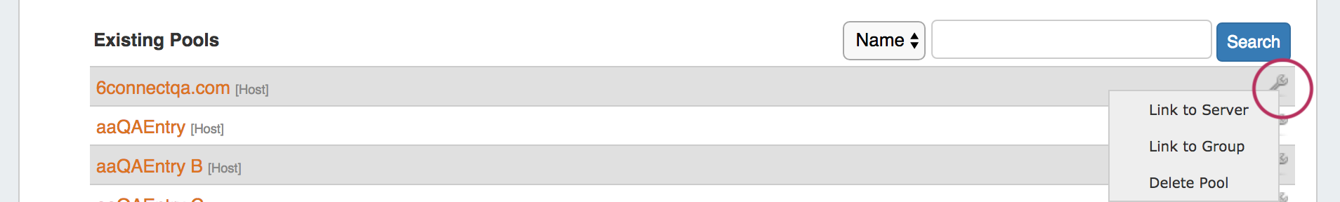 Use the Action menu on Existing Pools to Link to Server, Link to Group, or Delete Pool