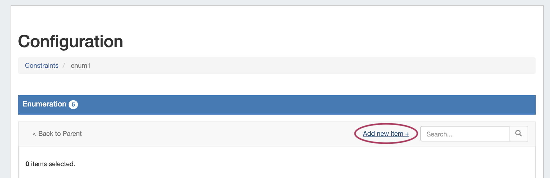 Add a new child enum item by entering a title, name/value, and the type. Typically, the type will be "=", for "equals this value".