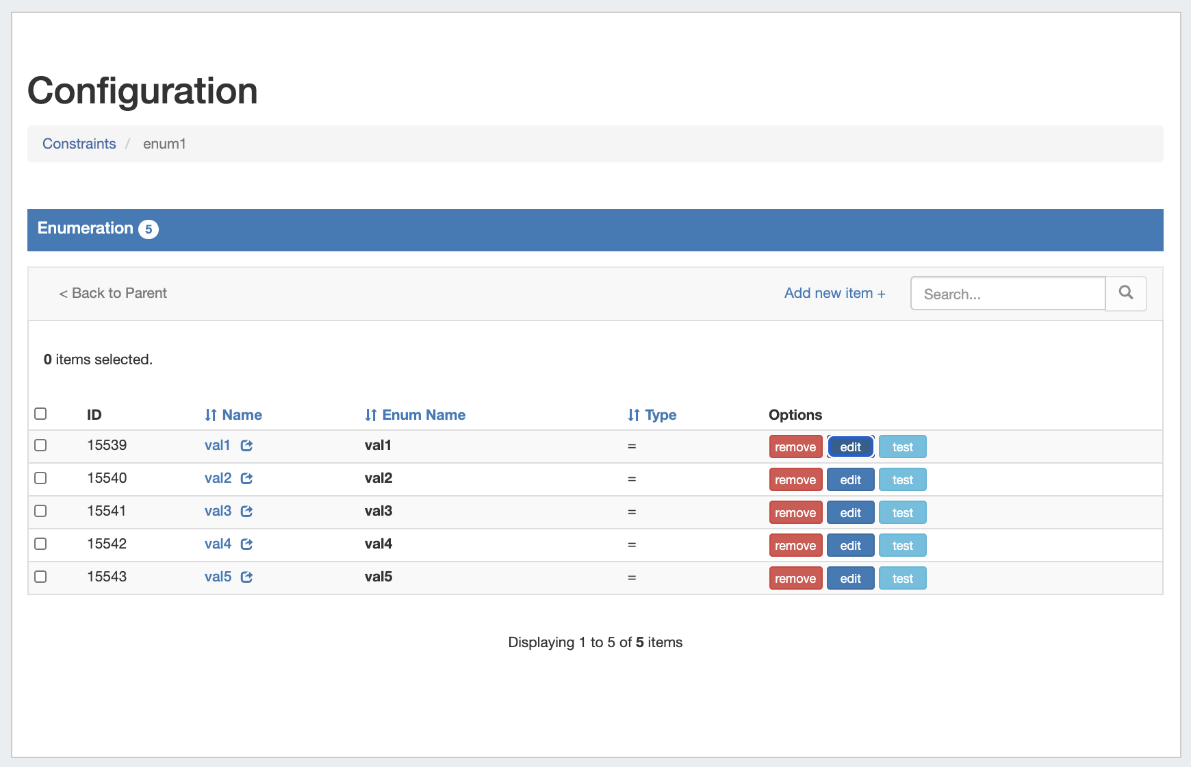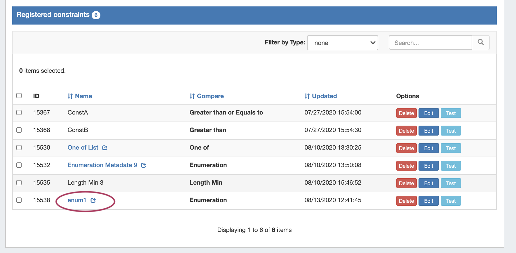 From here, navigate back up to the parent constraint list that displays "enum1", and click "Test" (test will not work on individual child constraint items)