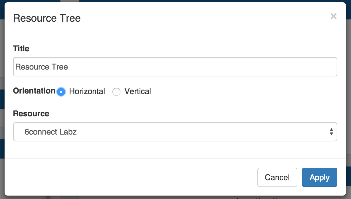 Orientation: Select "Horizontal" to view the tree in horizontal form, with the top level resource on the leftmost side of the widget, and children expanding to the right. "Vertical" will show the tree with the top level parent at the top of the widget, with children expanding downward.
