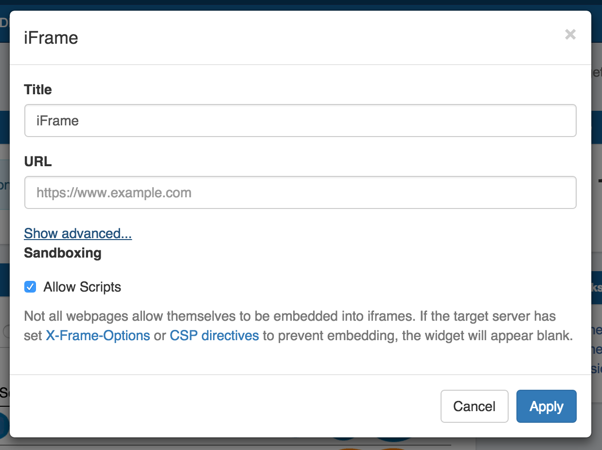 iFrame Edit Options: