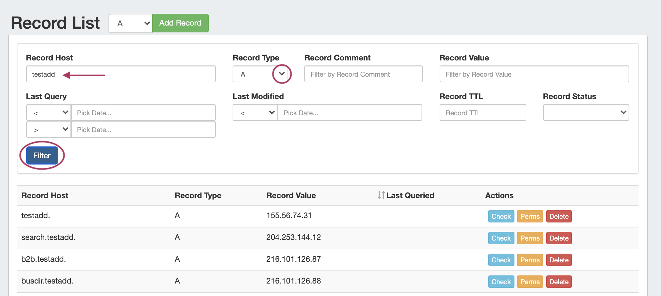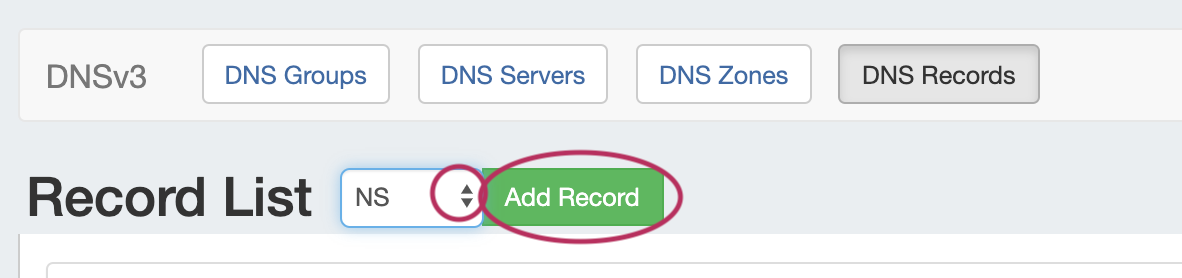 Next to "Record List", select the desired record type, then click "Add Record".