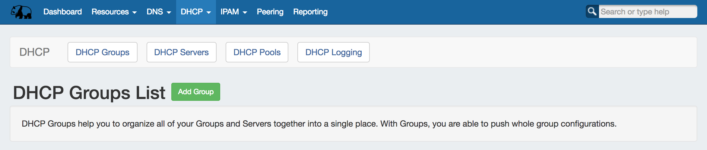 DHCP Groups allow for organizing multiple pools together and linking those pools with one or more servers. Pools may be pushed individually, as a Group, or at the server level.