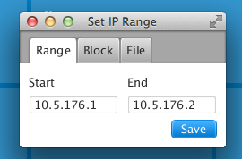 STEP 1: Set the IP range that you would like to scan. If you click on the "IP Range" square, you will have a window open to set the parameters.
