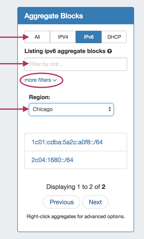 For additional information on performing IPAM tasks and working with aggregates and blocks, continue on to Working with IP Aggregates and Working with IP Blocks.