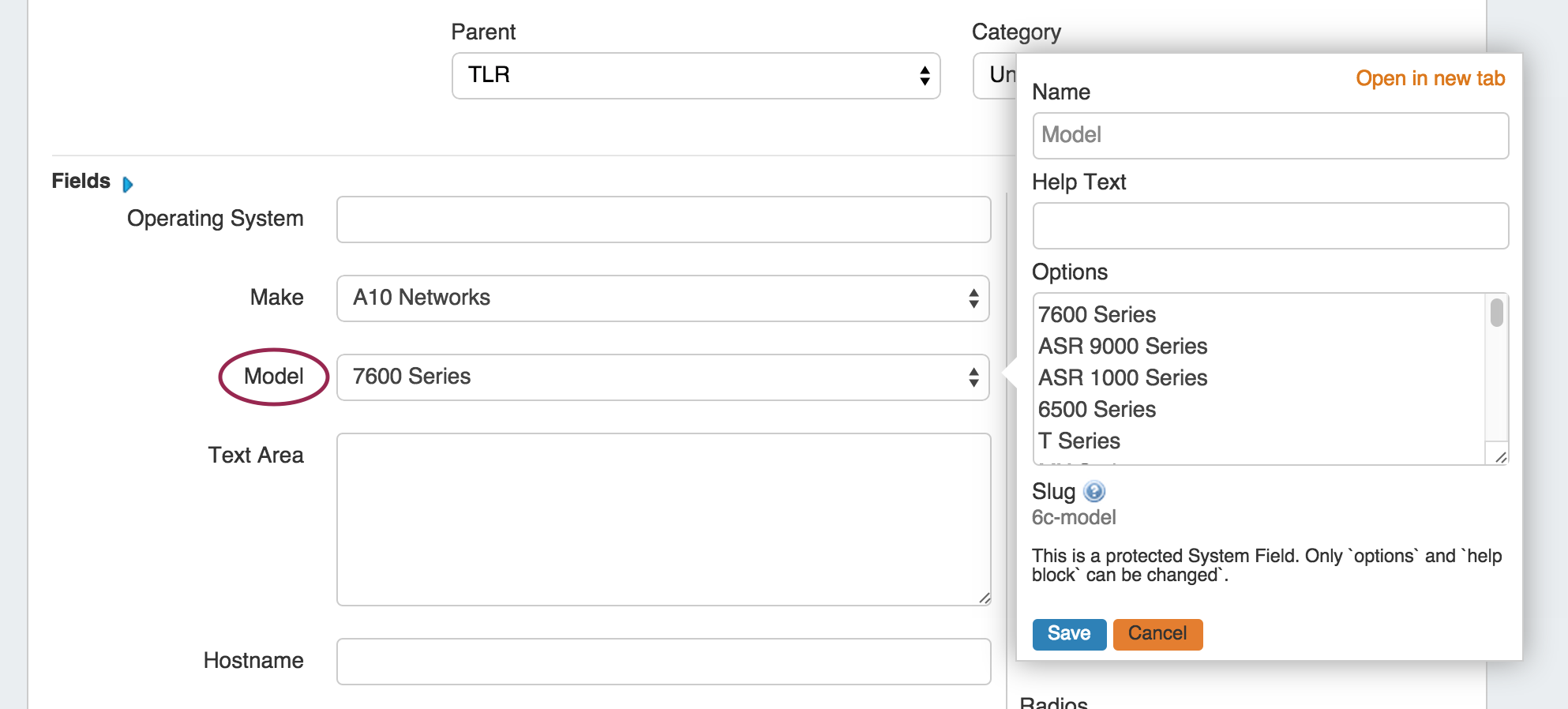 Select the field name and you will get an editing window to modify the parameters of the field. Custom fields may be renamed and have other attributes updated, whereas protected system fields may have noted restrictions.