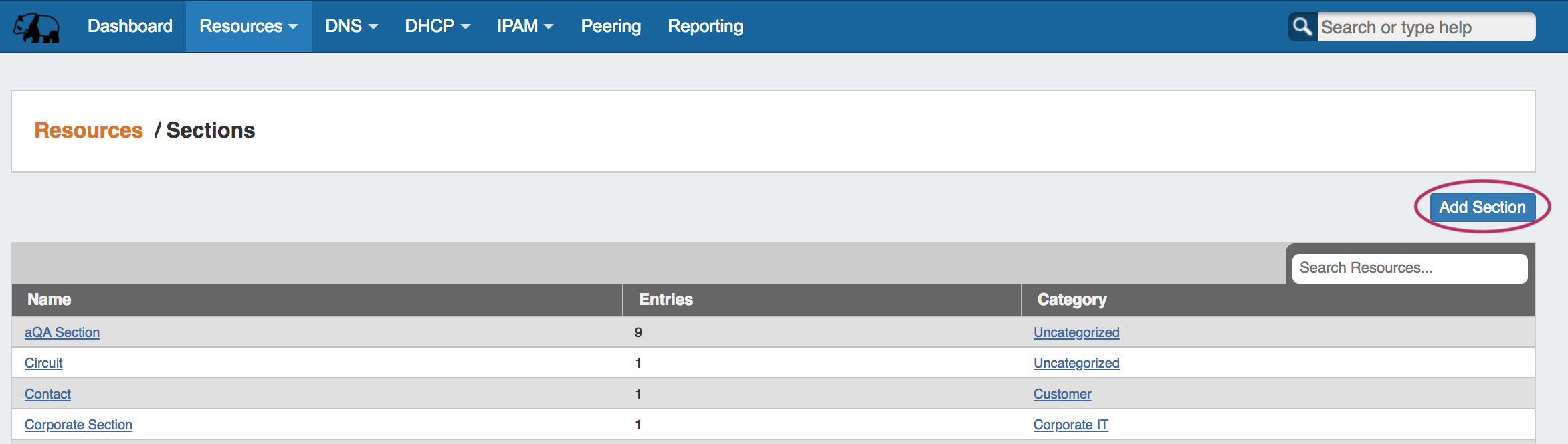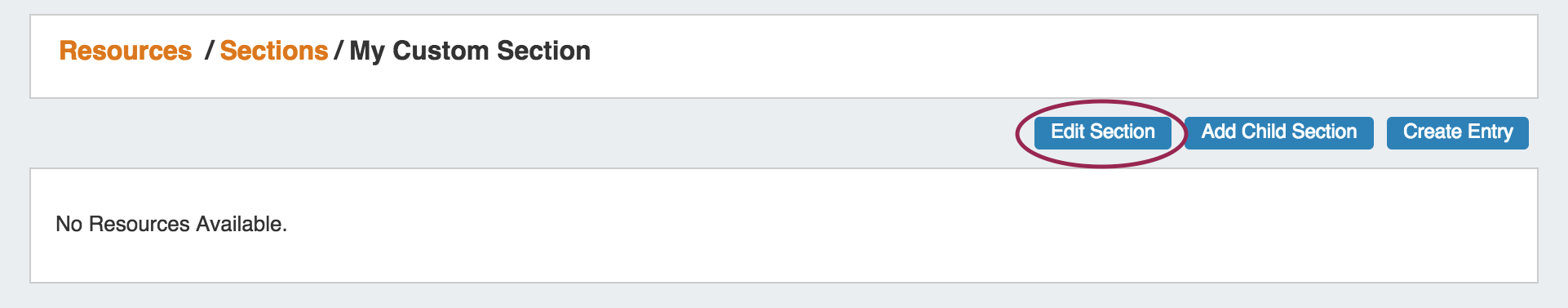 Click "Add Section" from the Sections sub-tab under the Resources Tab