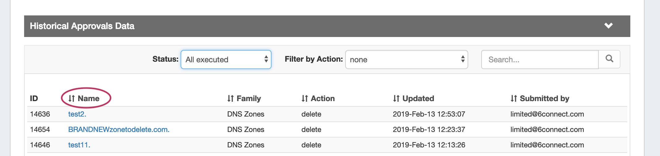 7.1.0 DNS ZoneList Pending Approvals Exp Submitter View.png